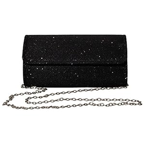 CLASSIC EVENING BAG: This evening clutch purses covered sparkling glitter that brings glamour to your formal dress; Durable hardware ( buckle & chain) and fabric lining for a long time use.