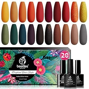 Beetles 20 Pcs Gel Nail Polish Kit Cozy Campfire Collection Orange Yellow Green Gel Nail Polish Soak Off Nail Lamp Base…