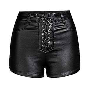 Clothing, Shorts, WomenRAMISU Womens Casual High Waisted Leather Shorts PU Leather Shorts Stretchy Drawstring Leather Shorts with Pockets