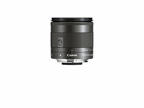 The Canon EF-M 11– 22 F/4– 5.6 is stm wide angle zoom lens is an excellent companion for your EOS M series digital camera. Offering a wide angle of view, it’s an excellent lens for taking group photos in tight spaces and landscapes. Built-in image stabilization helps enhance performance, even in low-light situations, and is especially effective when capturing HD movies thanks to the lens’s dynamic is. Specialized Canon optics help ensure high-resolution, sharp photos and movies. A refined, quiet autofocus system helps maintain focus with extraordinary speed, helping to ensure sharp photographs and HD movies.&Nbsp; features: 18 – 35 mm comparable focal length on a APS-C format camera.Wide-angle zoom lens for EOS M series digital cameras with optical image Stabilizer for up to three equivalent stops of shake correction.Lens retraction mechanism shortens the length of the lens and a compact, lightweight design allows easy portability.Rear focus system and built-in stepping motor (STM) help provide smooth and quiet continuous autofocus when shooting video with an EOS M series digital camera.Dynamic is (movie shooting mode only) helps deliver a wide image stabilization correction range, making it ideal for shooting while walking.Two aspheric lens elements and one UD lens element deliver superb image quality from the center to the periphery.Circular aperture (7 blades) helps deliver beautiful, soft backgrounds.Full-time manual focus allows manual focus adjustment after auto focusing.Minimum focusing distance: 5.9 in/0.15M.Maximum magnification of 0.30x at the telephoto end.