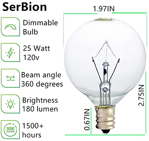 SerBion 25 Watt Wax Warmer Bulbs, Bulb for Full Size Warmer, 6 Pack E12 Base Wax Bulb, Dimmable – Warm White – 120 Volt…