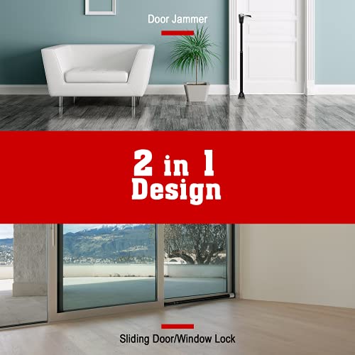 2-IN-1 DOOR STOPPER SECURITY BAR & SLIDING DOOR LOCK BAR: Use this device for two different purposes with easily interchangeable caps for hinged doors and sliding door/window